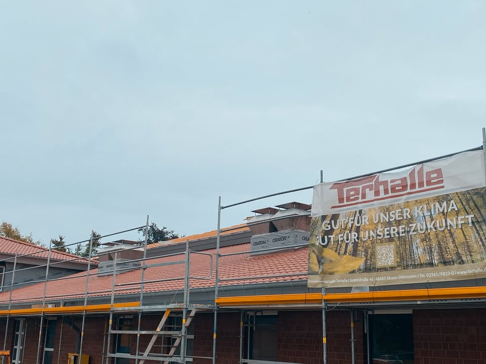 Update: Roof renovation at the double gymnasium in Billerbeck π After more than three decades, the 1,800 mΒ² roof area of the double gymnasium in Billerbeck is now undergoing a comprehensive renovation: ecological above-rafter insulation, new pan roofing, mineral wool insulation on the extensions and custom-made plumbing work from our workshop. π Current status of […]