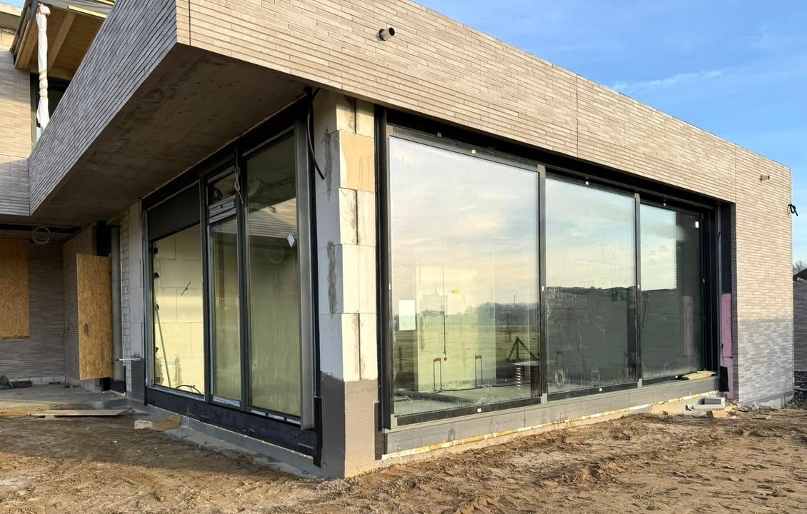Die zahlreichen Hebe-Schiebe-Türen sind bereits montiert. Ein Großteil der Aluminiumfenster im System AWS 75.SI ist ebenfalls eingebaut; einzelne Elemente werden im weiteren Bauverlauf ergänzt. Zusätzlich wurde am vergangenen Freitag die Lichtkuppel montiert, die für helle, offen gestaltete und lichtdurchflutete Räume sorgt. 🪟