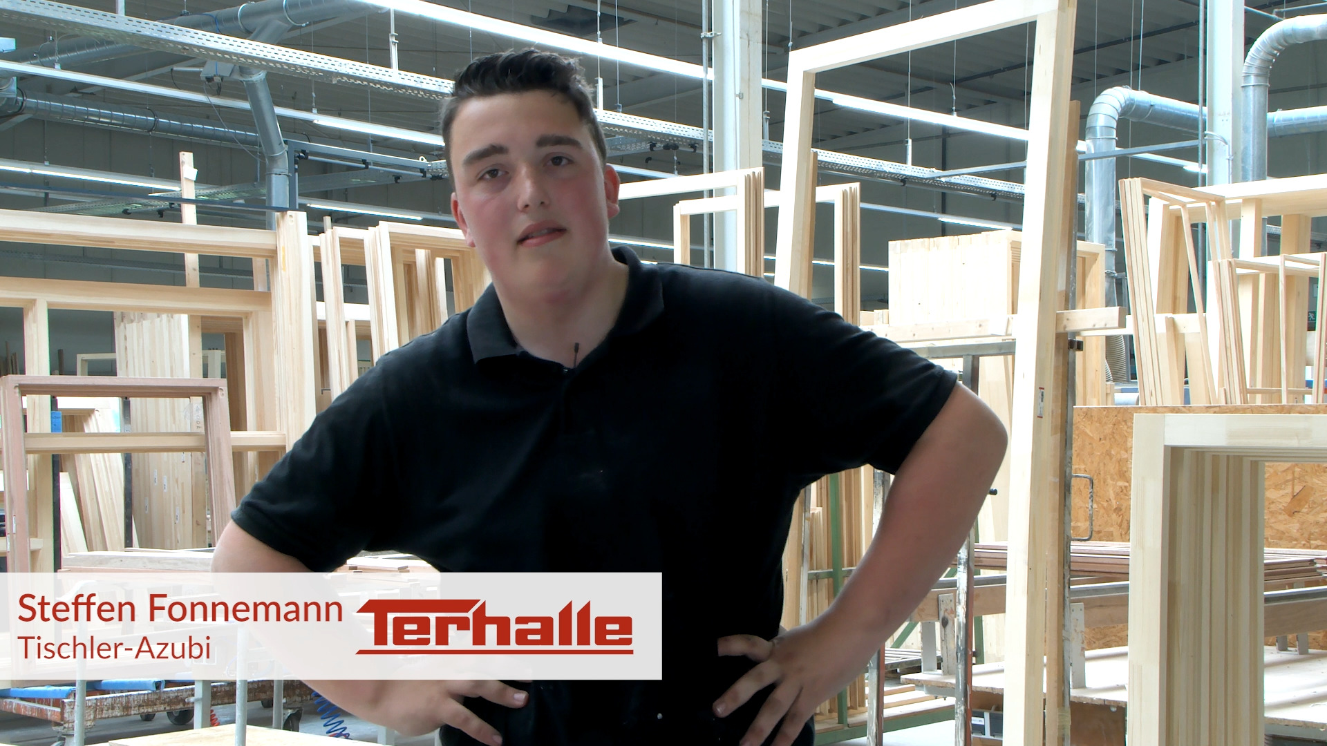 Heute stellen wir Euch unseren aktuellen Tischler Azubi im 2. Lehrjahr, Steffen Fonnemann, vor. In diesem Video erlebt ihr ihn an seinem Arbeitsplatz im Bankraum, hier bei uns in der Fensterbau-Abteilung der Unternehmensgruppe Terhalle.